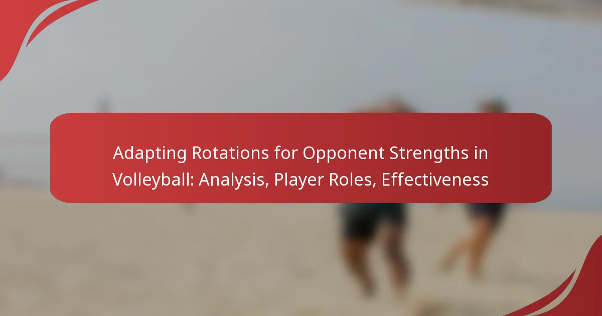 Adapting rotations in volleyball to counteract opponent strengths is a strategic approach that involves careful analysis of their capabilities and adjusting player positions accordingly. By assessing the opposing team’s performance and implementing tactical changes, coaches can optimize player roles to exploit weaknesses and enhance overall team effectiveness.
