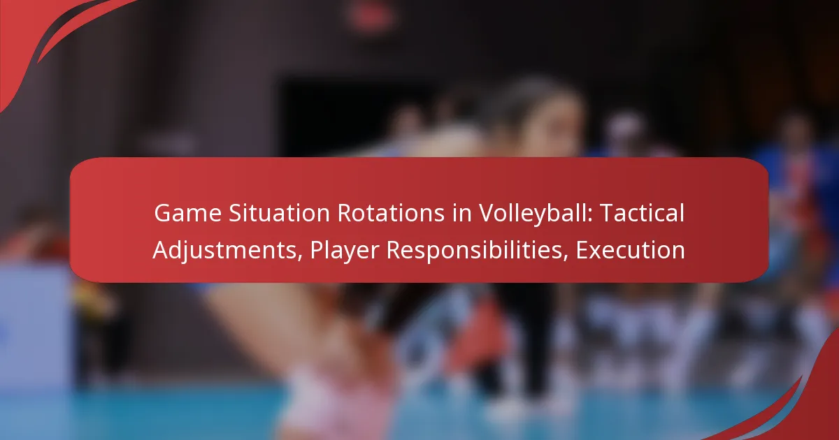 Game situation rotations in volleyball are essential for teams to adapt their strategies based on the dynamics of the match. By making tactical adjustments, teams can optimize player positioning and enhance execution, ensuring that each player’s specific responsibilities align with the overall game plan. Understanding these rotations and roles is vital for maximizing performance and exploiting opponents’ weaknesses.