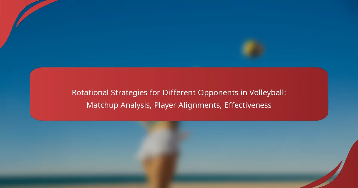 In volleyball, key rotational strategies are essential for maximizing team performance against diverse opponents. By systematically adjusting player movements and alignments, teams can leverage their strengths while exploiting the weaknesses of their rivals. Analyzing opponent characteristics is crucial for developing effective matchup strategies that enhance overall gameplay and effectiveness during matches.